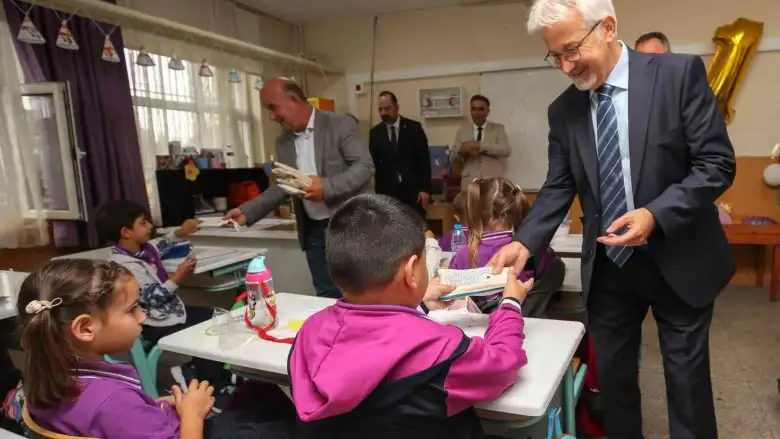 Yeni eğitim ve öğretim yılının başlamasıyla birlikte tüm yurtta olduğu gibi Nilüferde de öğrenciler okulda ilk gün heyecanı yaşadı. Nilüfer Belediye Başkanı Turgay Erdem de, eğitim ve öğretim yaşamına yeni başlayan minik öğrencileri okullarında ziyaret ederek, ilk gün heyecanlarına ortak oldu. İlk ders zilinin çalmasının ardından Gölyazı Ünallar İlkokulu ile ziyaretlerine başlayan Başkan Turgay Erdem, ardından Akçalar Fahriye Sayarel İlkokulu ve Hasanağa İlkokuluna giderek öğrencilerle buluştu. Öğrenci ve öğretmenlere yeni eğitim ve öğretim dönemi için Hayırlı olsun dileklerini ileten Nilüfer Belediye Başkanı Turgay Erdem, öğrencilere günün anısına armağanlar verdi. İçinde kalem, kalemtraş, silgi, renkli boya kalemleri gibi kırtasiye malzemeleri bulunan İklim Yılı temalı kalemlik setini öğrencilere hediye eden Başkan Turgay Erdem, başarı diledi.