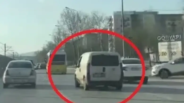 Yaşanan tehlikeli anlar, başka bir sürücünün araç kamerası tarafından kaydedildi. Görüntülerde ticari aracın kontrolsüz şekilde şerit değiştirerek ilerlediği anlar dikkat çekti.