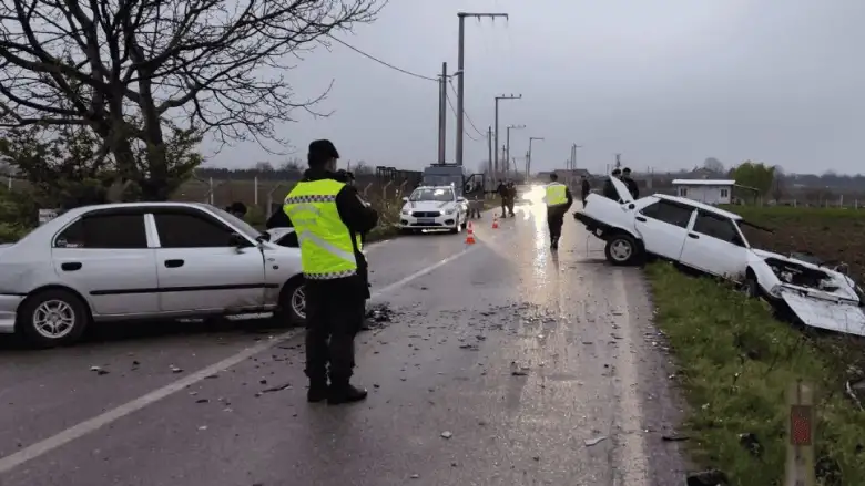 Ortaköy'den İnegöl'e seyir halinde olan sürücü Cemal Arık Aktaş(28) yönetimindeki 16 J 2837 plakalı otomobil, İnegöl'den Ortaköy Mahallesine seyir halinde sürücü Halil Çukadar(22) yönetimindeki 16 E 3295 plakalı otomobil, yağışla kayganlaşan yolda kontrolden çıkarak kafa kafaya çarpıştılar. Şiddetli çarpışmanın etkisiyle araçlar savrulurken 16 J 2837 plakalı otomobil parçalanarak hurdaya döndü.