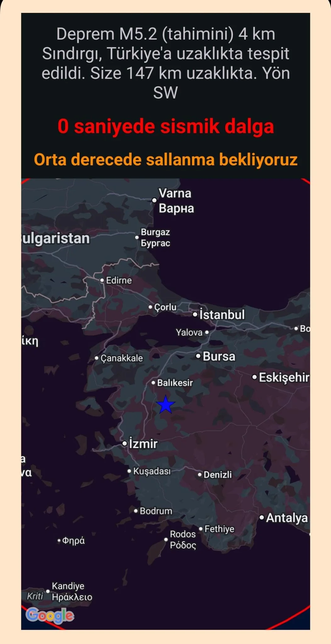 İlk bilgilere göre deprem Balıkesir'in Sındırgı ilçesinde meydana geldiği ve 5.1 şiddetinde olduğu öğrenildi.