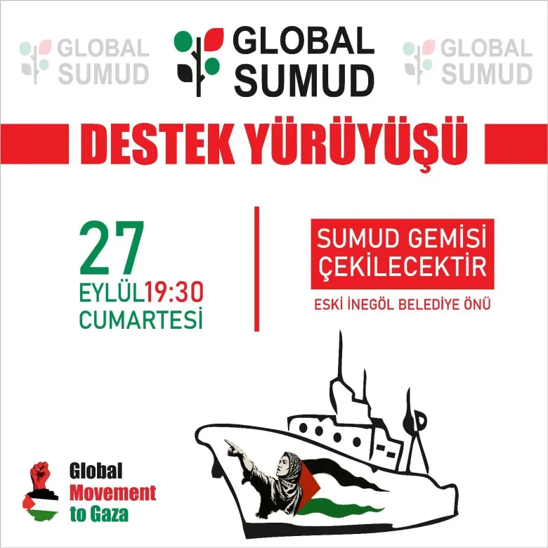 27 Eylül Cumartesi günü saat 19.30’da eski belediye meydanında başlayacak yürüyüş, heykel meydanında sona erecek. Etkinlikte, Gazze’ye insani yardım ulaştırmak isteyen filoya destek için temsili bir Sumud Gemisi de katılımcılarla birlikte yürütülecek. Bu sembolik adım, Gazze’de yaşanan insani krize dikkat çekmeyi hedefliyor.