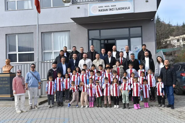 Sultan Su İnegölspor’un yürüttüğü “Bir Çocuğun Mutluluğu Dünyayı Güzelleştirir” projesi kapsamında, İnegöl Marangozlar ve Mobilyacılar Odası Başkan Adayı Yasin Altuntepe ve yönetim kurulu üyelerinin desteğiyle Maden Hasan İnci İlkokulu ve Boğazköy İlkokulu’nda toplam 65 öğrenciye formalar hediye edildi.