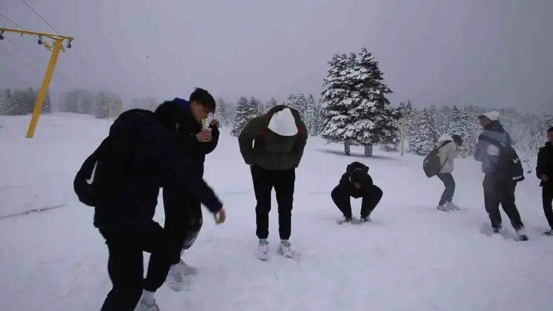 Günübirlik Uludağ’a gelen gençler ise Kasım ayında karın tadını çıkarttı.