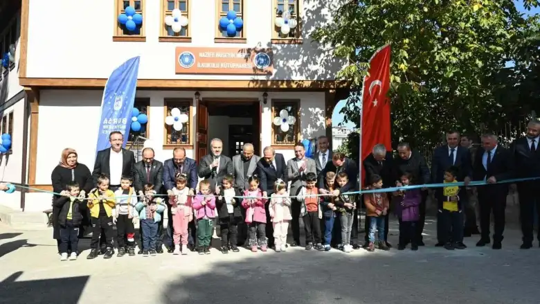 Konuşmaların ardından Başkan Alinur Aktaş ve beraberindekiler, öğrencilerle birlikte açılış kurdelesini keserek kütüphaneyi gezdi.