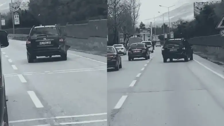 Olay, merkez Soğanlı Mahallesi Avrupa Konseyi Bulvarı üzerinde meydana geldi. Edinilen bilgiye göre, kaza yapan cipin sürücüsü, aracını götüreceği yere çekiciye bindirmek yerine sürerek götürmeyi tercih etti. Cip ise lastiklerinin yamukluğu sebebiyle yan yan giderken o anlar trafikteki başka bir sürücünün cep telefon kamerasına yansıdı.