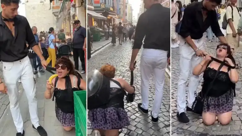 Olay, Beyoğlu Büyükhendek Caddesi'nde meydana geldi. Görüntülerde U.Y. (27) isimli şahsın, N.B. (57) isimli kadına tasma takarak kalabalık cadde boyunca yürüdüğü görüldü.