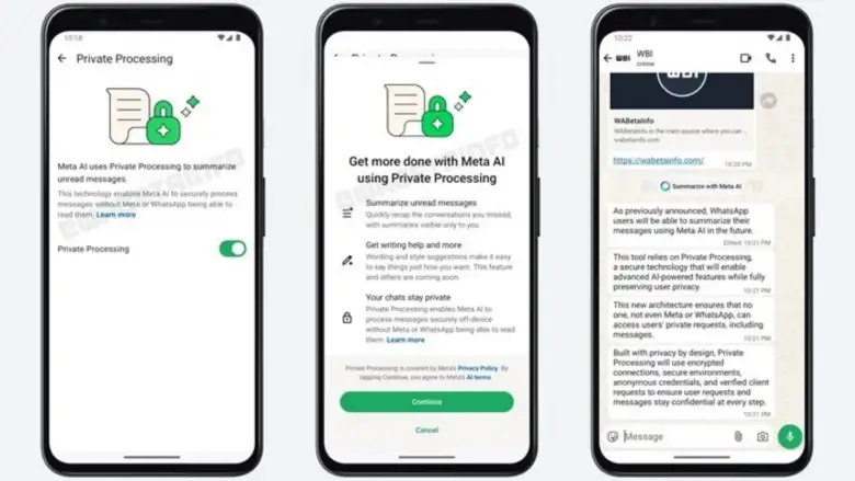 'Private Processing' yani 'Özel İşleme' adını taşıyan güvenlik katmanıyla, özetleme işlemi tamamen cihaz üzerinde yapılıyor. Kullanıcı verileri ne WhatsApp ne de Meta sunucularıyla paylaşılmıyor.