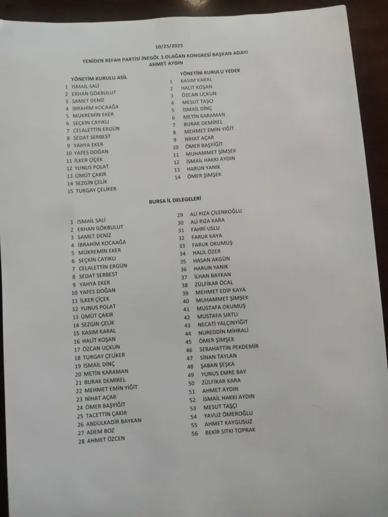 “Bu kongrenin, İl Başkanımızın ve liderimiz Fatih Erbakan’ın Bursa’daki komutanının işaret ettiği şekilde gerçekleşeceğini düşünüyorum.”